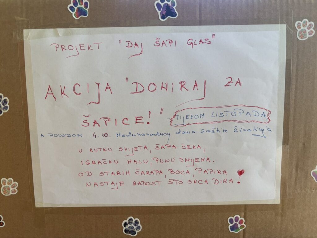 u sklopu našeg školskog projekta “Daj šapi glas”, pokrećemo posebnu humanitarnu akciju “Doniraj za šapice”!